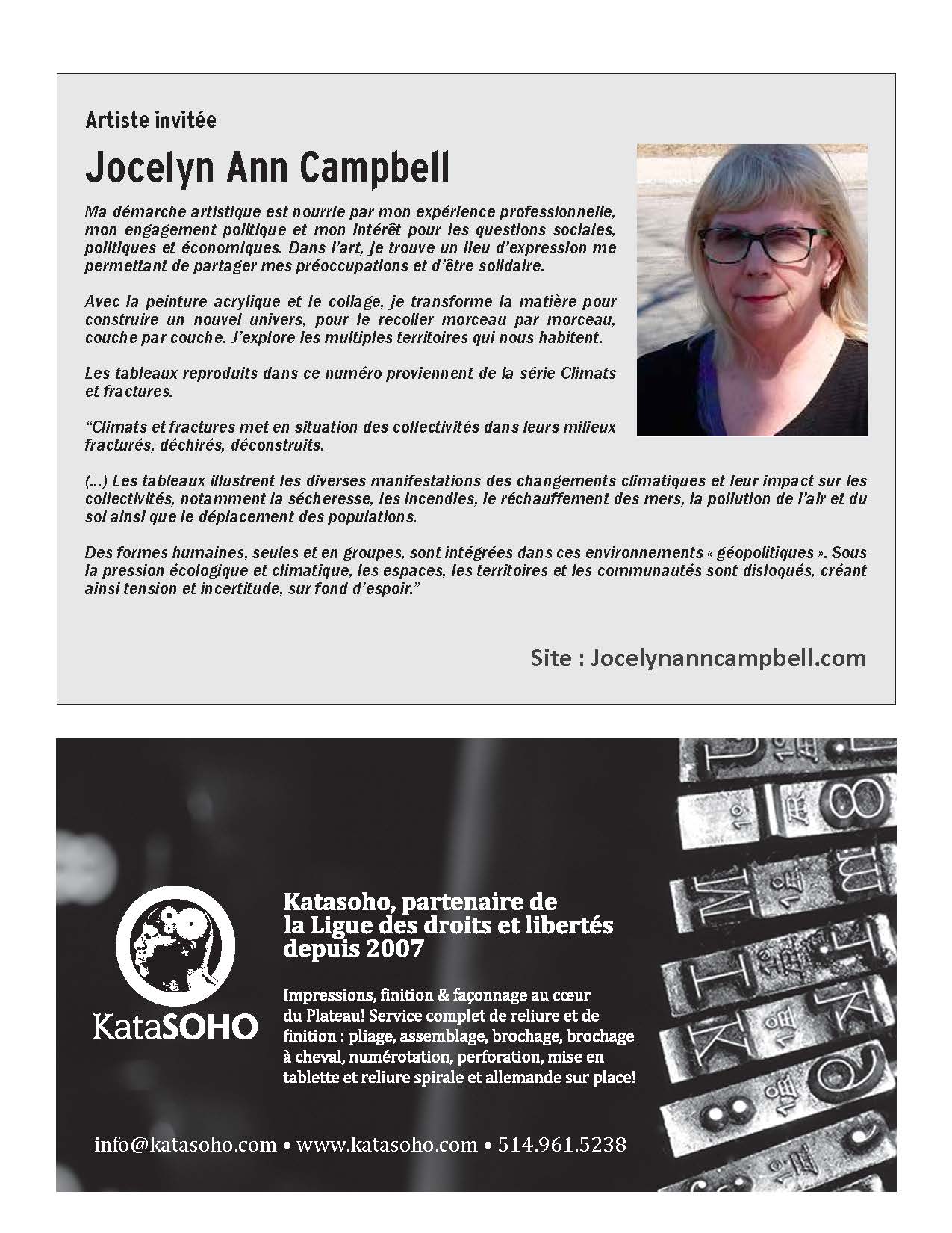 Pour Climats et fractures, j’ai rencontré l’automne dernier, à Kamouraska, Roméo Bouchard, auteur de Survivre à l’offensive des riches, un livre qui situe très bien les enjeux environnementaux de l’heure. J’en ai intégré un extrait à mon exposition, ainsi que des textes de Nelly Arcan, Louise Vandelac, Jean-Luc Mélanchon et Natasha Kanapé Fontaine. Pour ma part, j’ai trouvé dans l’art un nouvel espace de liberté, d’engagement et de solidarité.