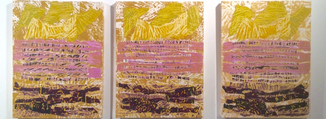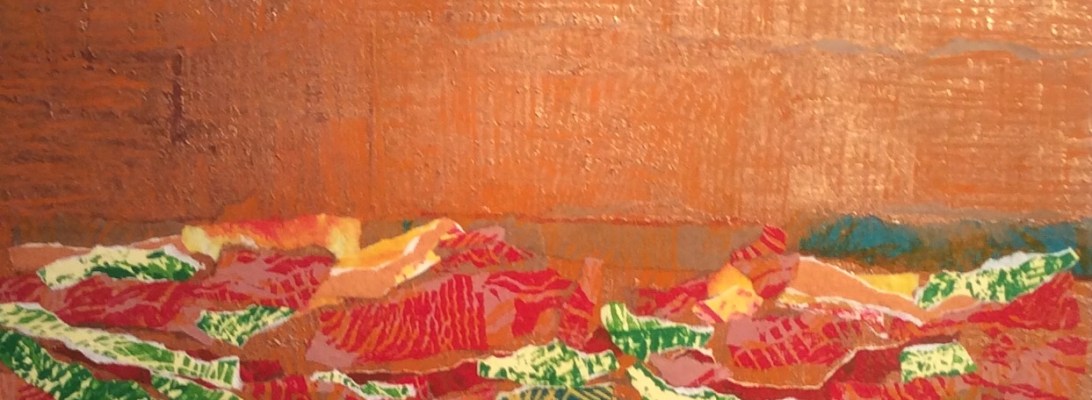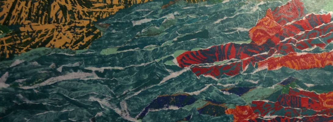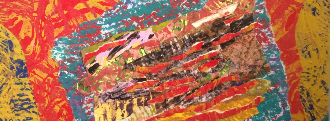 Le thème des réfugiés m’a habitée pendant des mois. Ce fut un parcours intense : j’ai utilisé l’acrylique, les étampes, les papiers déchirés et recollés pour reconstruire une trame géopolitique en 18 tableaux inspirés de l’actualité. Ces tableaux feront l’objet de mon exposition solo du 20 septembre au 3 octobre 2016, à la Librairie-galerie Bonheur d’occasion, 1317, avenue du Mont-Royal Est, Montréal.